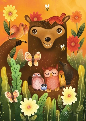 This colorful illustration of forest friends will make a unique decoration in your home.