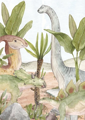 Once upon a time, in the days when dinosaurs roamed the Earth... A colorful poster depicting these fascinating animals will be the perfect decoration for your child's room.